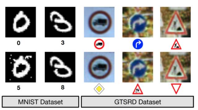 《攻击机器黑匣子实用教程》,2017年3月19日。研究人员改变了第一行的图像,以误导神经网络,并导致了最后一行的错误解读