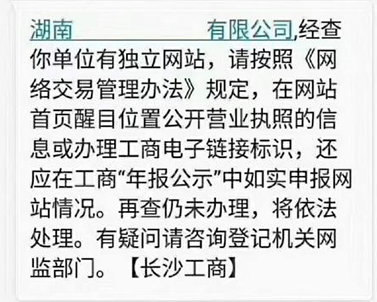 最近许多企业收到【长沙工商】的短信,内容如下图所示: