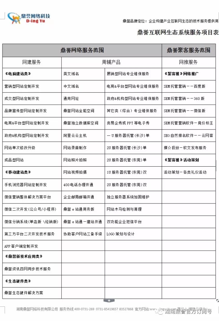 鼎誉网建产品涵盖PC端、移动端及APP等产品类型,擅长多种网站类型,如:营销型网站、品牌宣传型网站等。