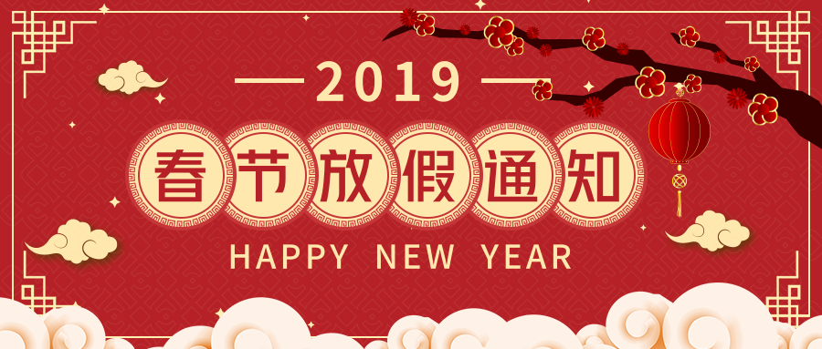 猪年新春到,心情无限妙;春节愉快合家欢,幸福美满万年长。湖南鼎誉也即将迎来2019年春节假期,在这里湖南鼎誉提前祝大家春节快乐!具体放假安排如下:2月1日(农历十二月二十七)星期五放假,2月12日(农历正月初八)星期二正式上班,共计11天。>>>