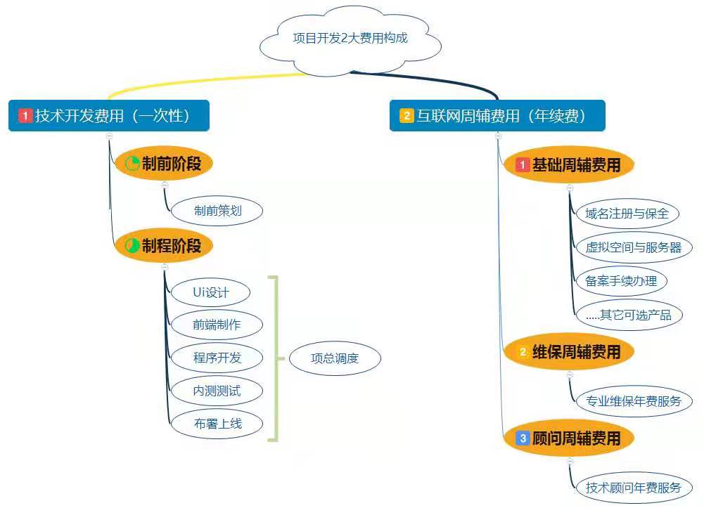 免费试听一个互联网的定制开发服务项目需要2项投入费用:①一次性的技术开…